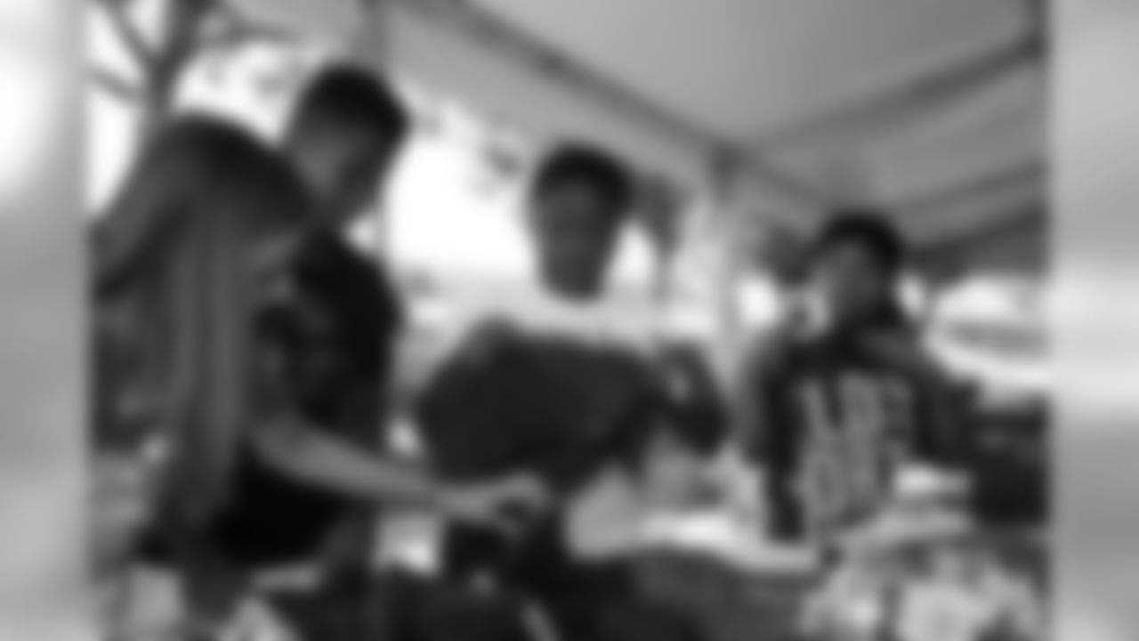 The young people were paired with Vikings staff who were volunteering as mentors for several hours on a day that included watching practice, eating a healthy meal, participating in a health-and-wellness clinic led by former linebacker and Vikings Youth Football Manager E.J. Henderson and collecting autographs from current players. The students also received backpacks filled with school supplies.